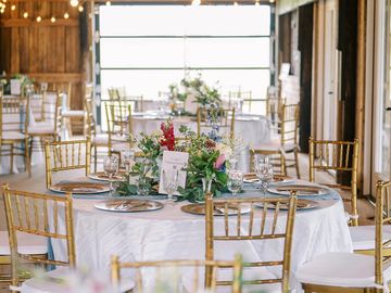 Add dinner to your two-day rental for an additional $500. Includes tables and chairs for up to 32 guests, linens and centerpieces.